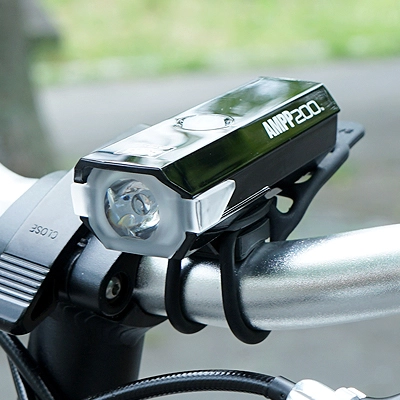 AMPP200 er en USB-genopladelig lygte med fremragende synlighed fra siden. En alsidig gummirem giver mulighed for hurtig og let fastgørelse/afmontering fra styret.