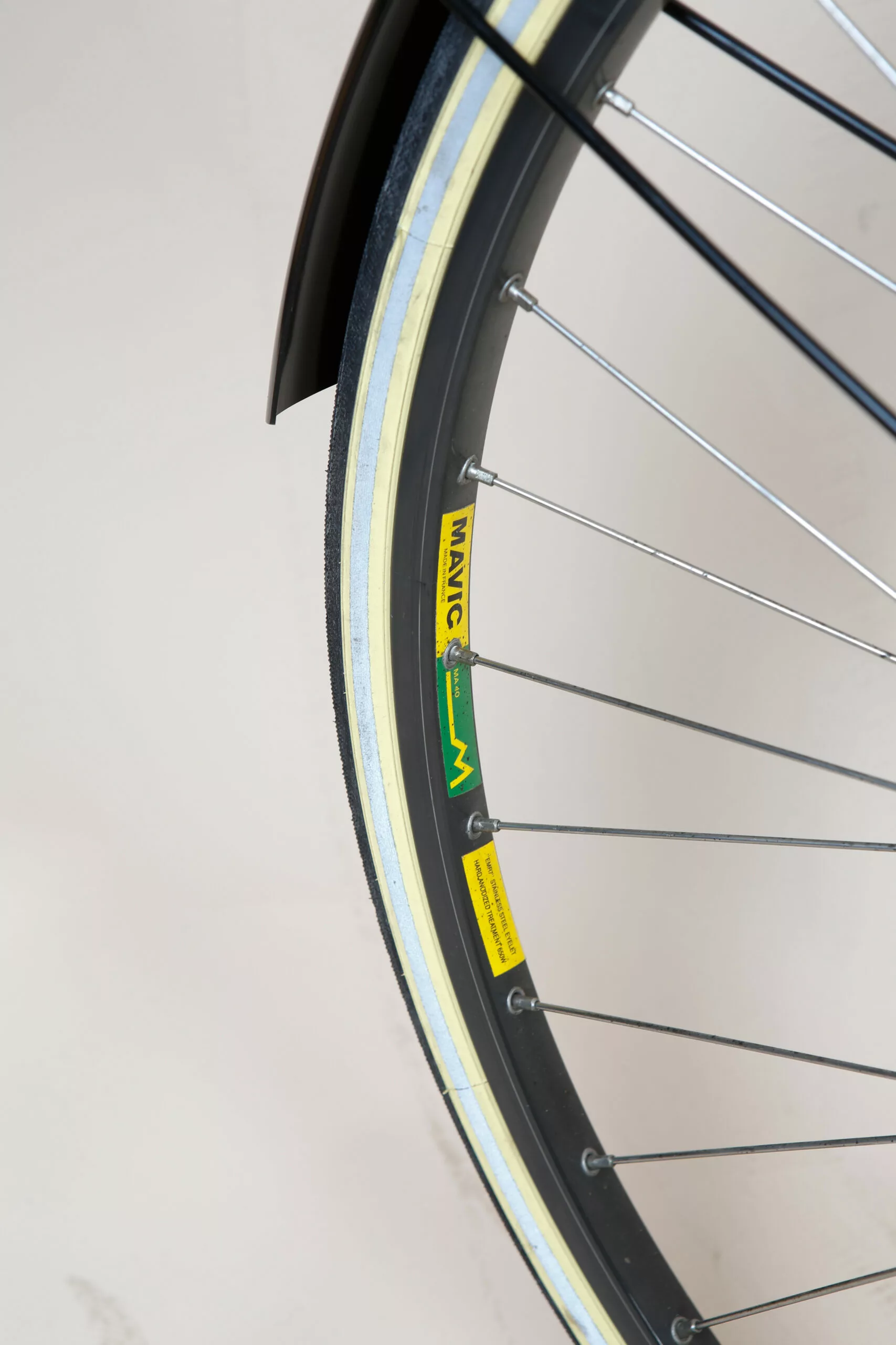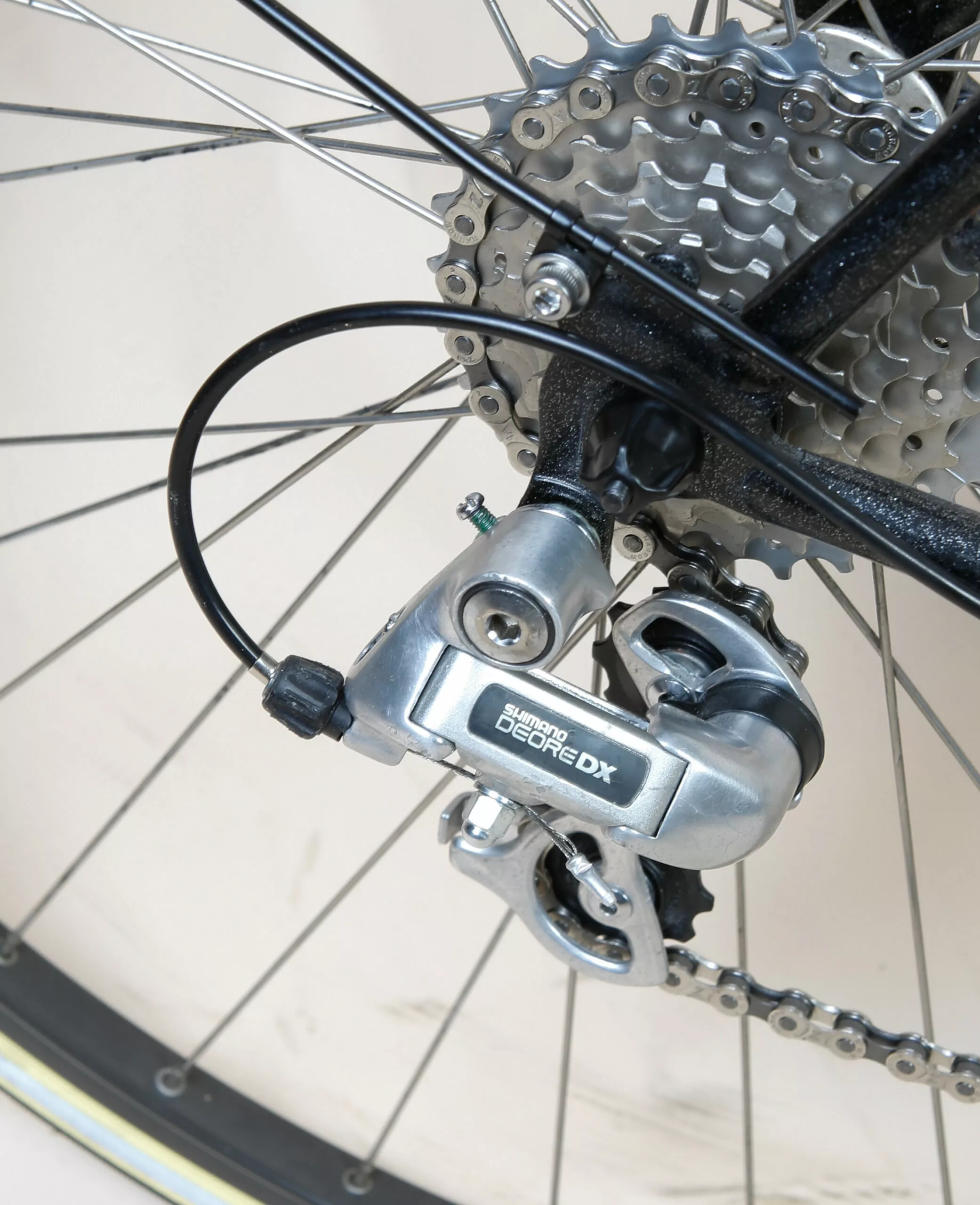 Den har cantilver bremser. Shimano DX 7 speed gear med “thumbies” gearvælgere på styret, her kan du vælge imellem 7 speed index/friktion. . NOS hjulsæt med Shimano DX nav og Mavic MA40 fælge (lækkert hjulsæt og meget få af dem tilbage i NOS stand). Selle Italia turbo sadel. Dia compe canti bremser. Tange styrfittings. Sugino GT kranksæt. Panaracer touring dæk.