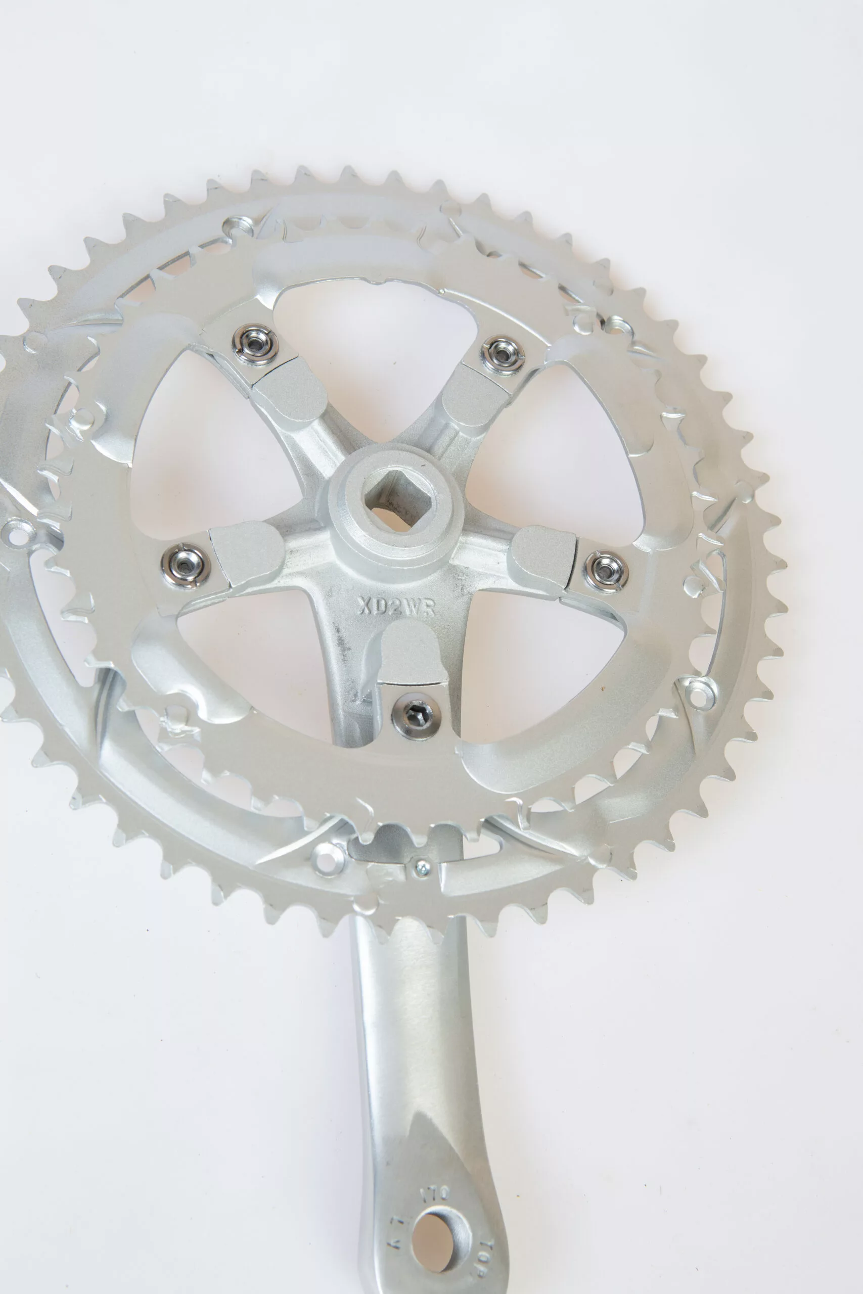 Budget kranksæt med 2 klinger.Kompatibel med 1-8 speed kæder. Da klingerne er i stål er det ikke et let kranksæt. Men det er stærkt og der er lang holdbarhed når klinger er i stål.