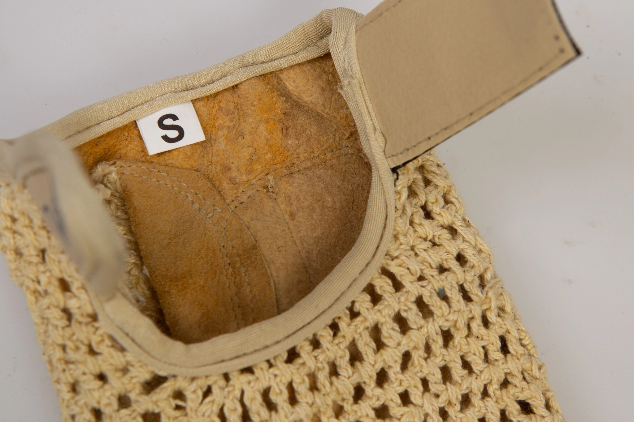 Kvalitets handsker hæklede overdel og gedeskind underdel.