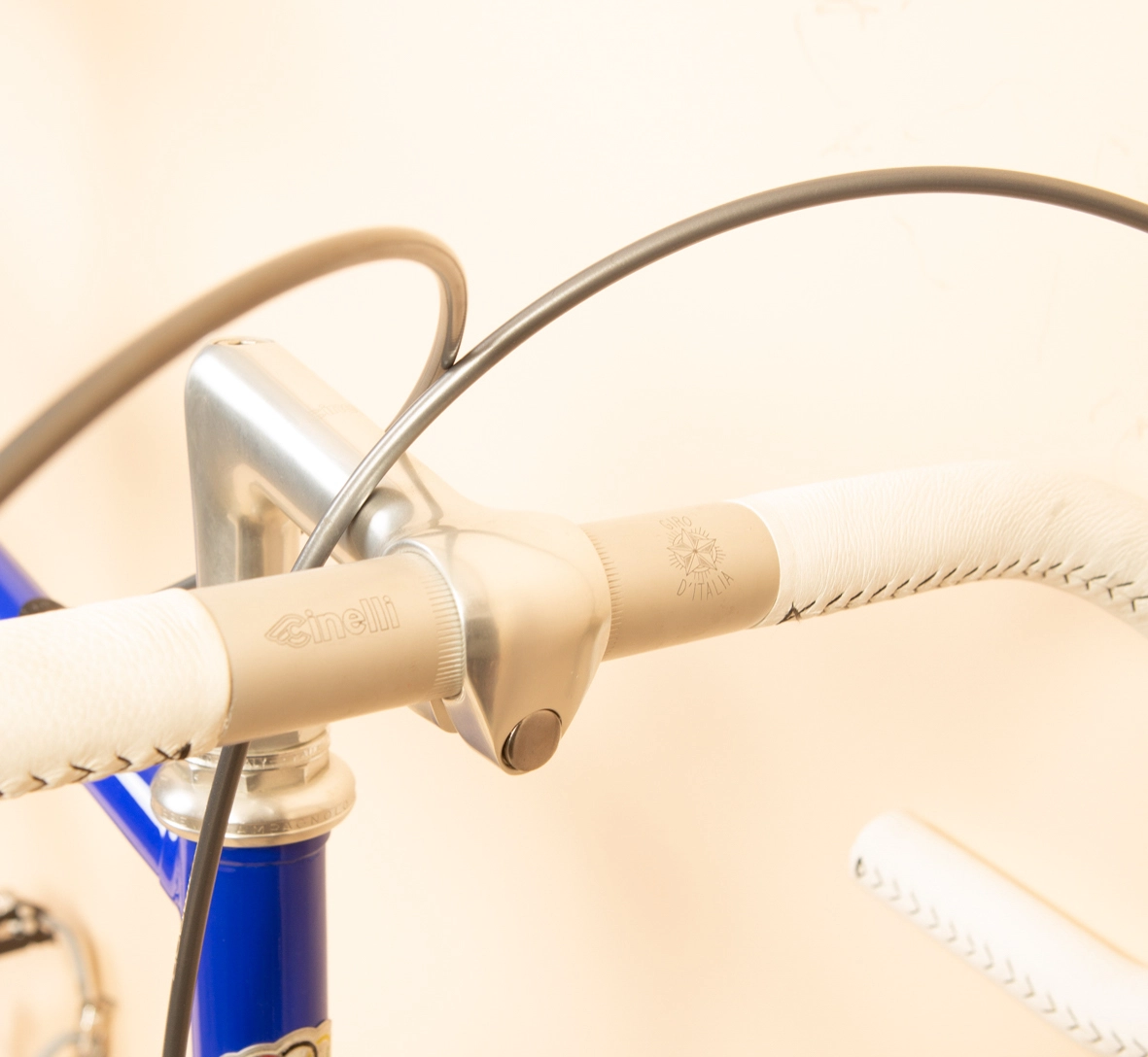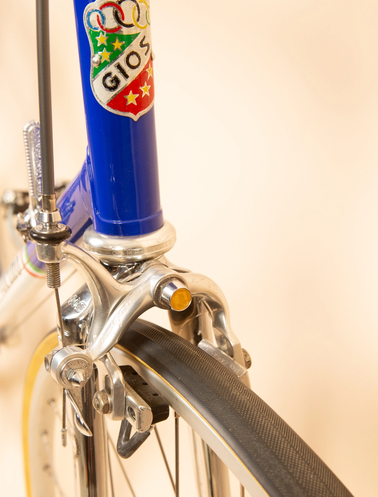 Gios Torino racer. Stellet er fra 1983 og renoveret hos Gios for nylig. Derefter bygget op med udelukkende Campagnolo NOS dele , NOS Ambrosio clincher fælge, NOS turbo sadel (Benard Hinault edition) nye Veloflex dæk , nyt Almarc læder betræk på ny Cinelli styr og frempind. Bremse klør er Campagnolo super record 50 års jubilæums serie, NOS selvfølgelig.