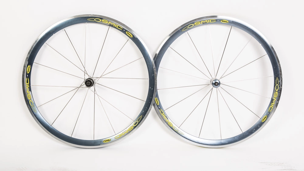 Iconic wheel set New old stock Mavic Cosmic pro 700c clincher with Shimano 8/9/10 speed body. Original quick release , wheel bags, rim tape include. Very rare set NOS.