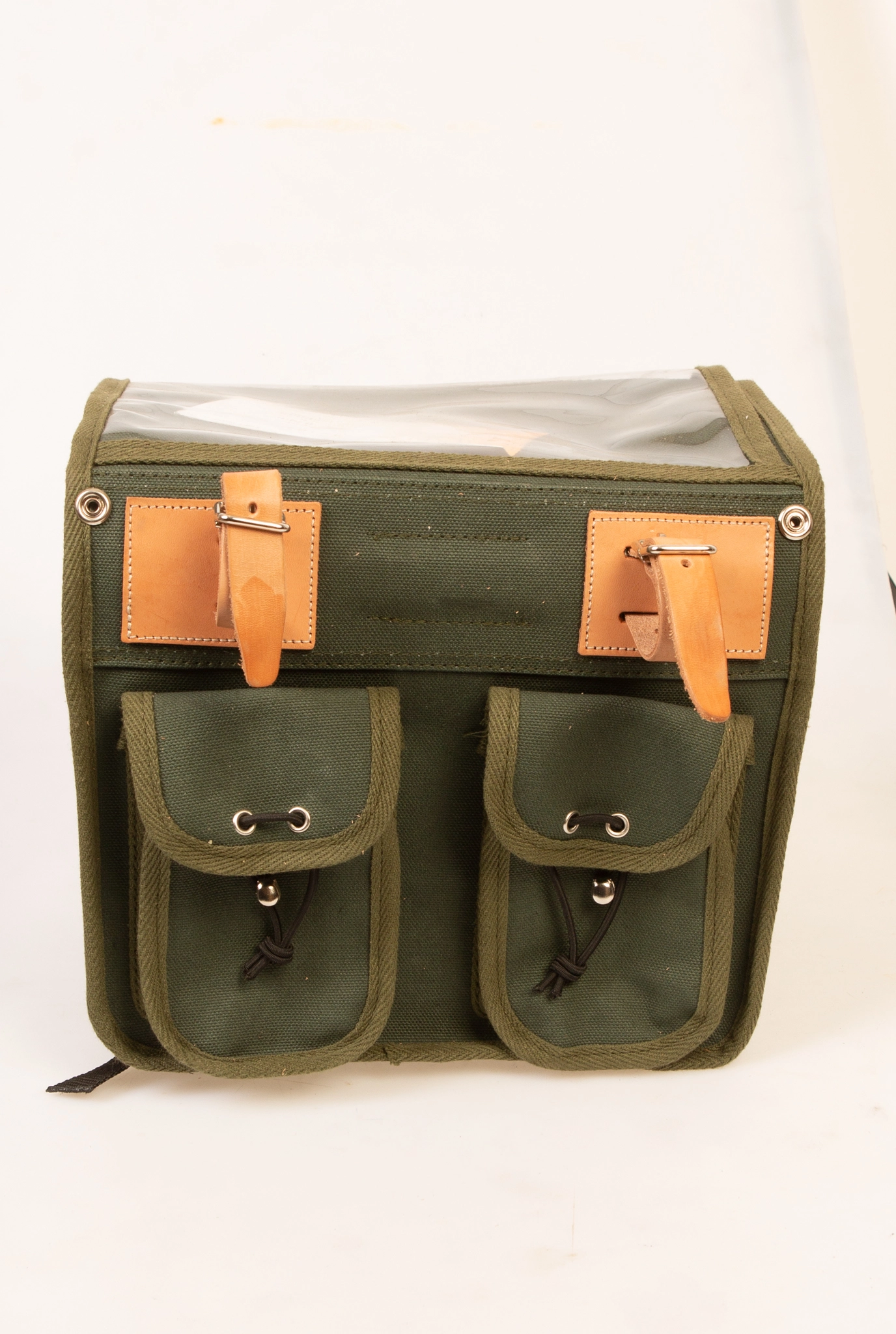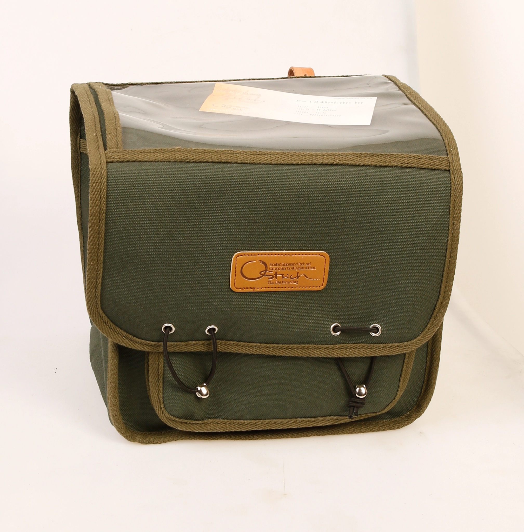 Touring front taske fra Japanske Osterich. Lækker kvalitet i kraftig kanvas med læder stropper. Perfekt til de lange retro touring ture.