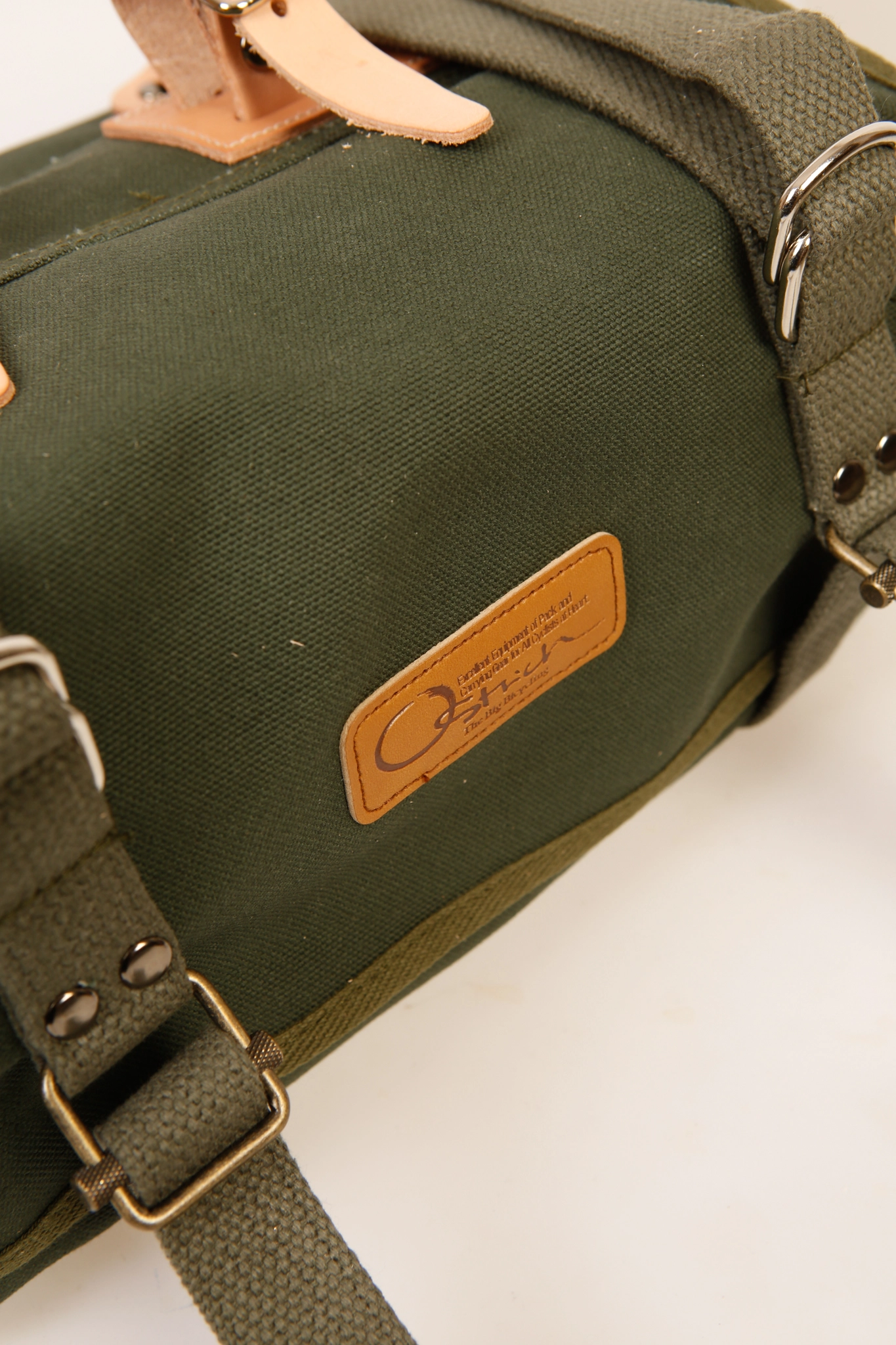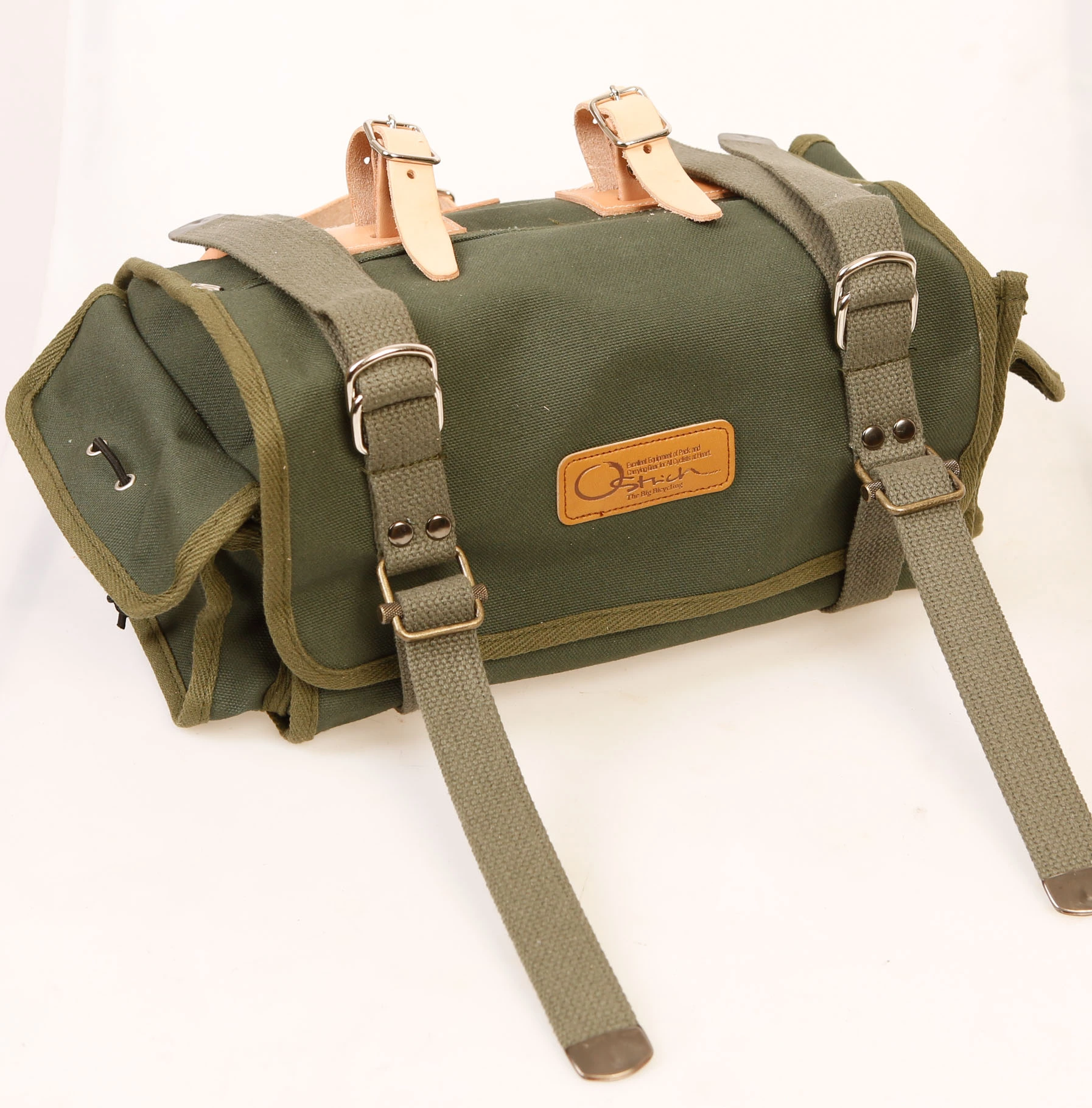 Stor og rummelig , praktisk sadeltaske fra Japanske Osterich. 8.2L . Kraftig kanvas med læder stropper.