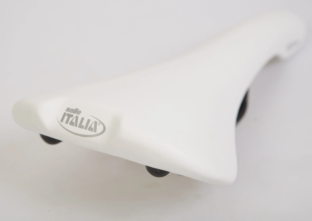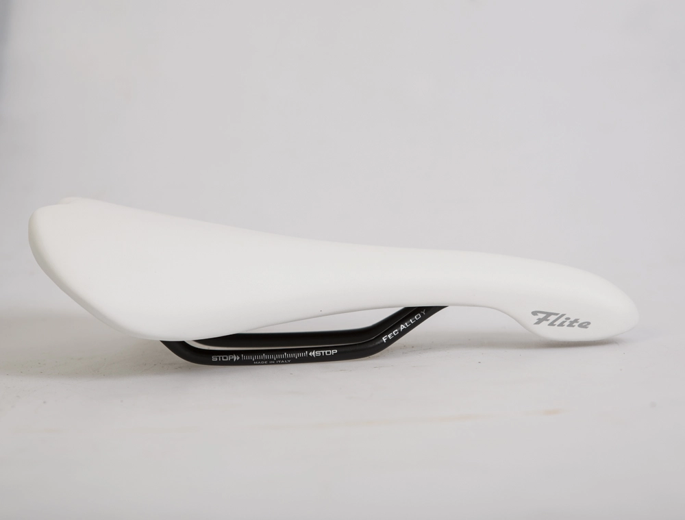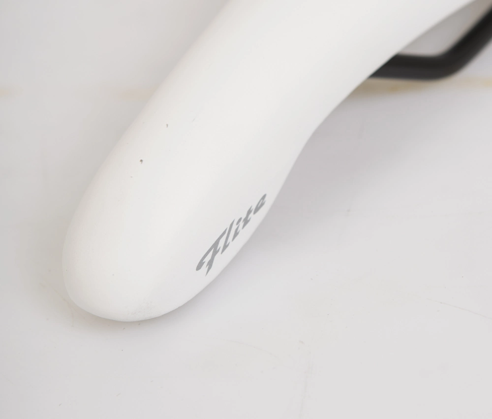 Selle italia flite er en klassiker fra 1990. Denne udgave er med alu rails istedet for titanium og i farven hvid med grå tekst.