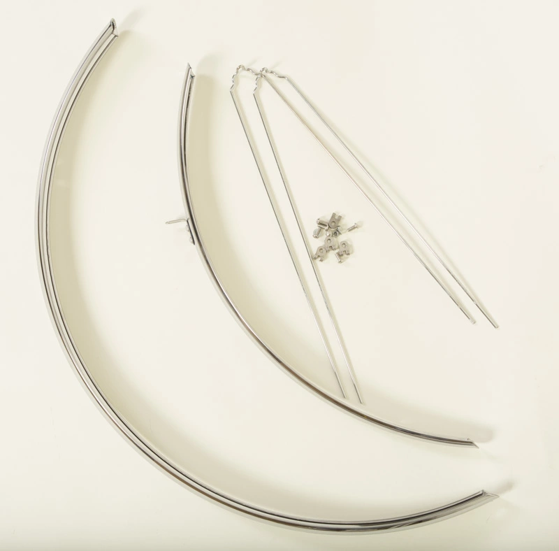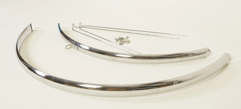Rustfri stål skærme fra Velovintage. Klassiske som i gamle dage. Der medfølger skærmstiver , beslag og skruer.