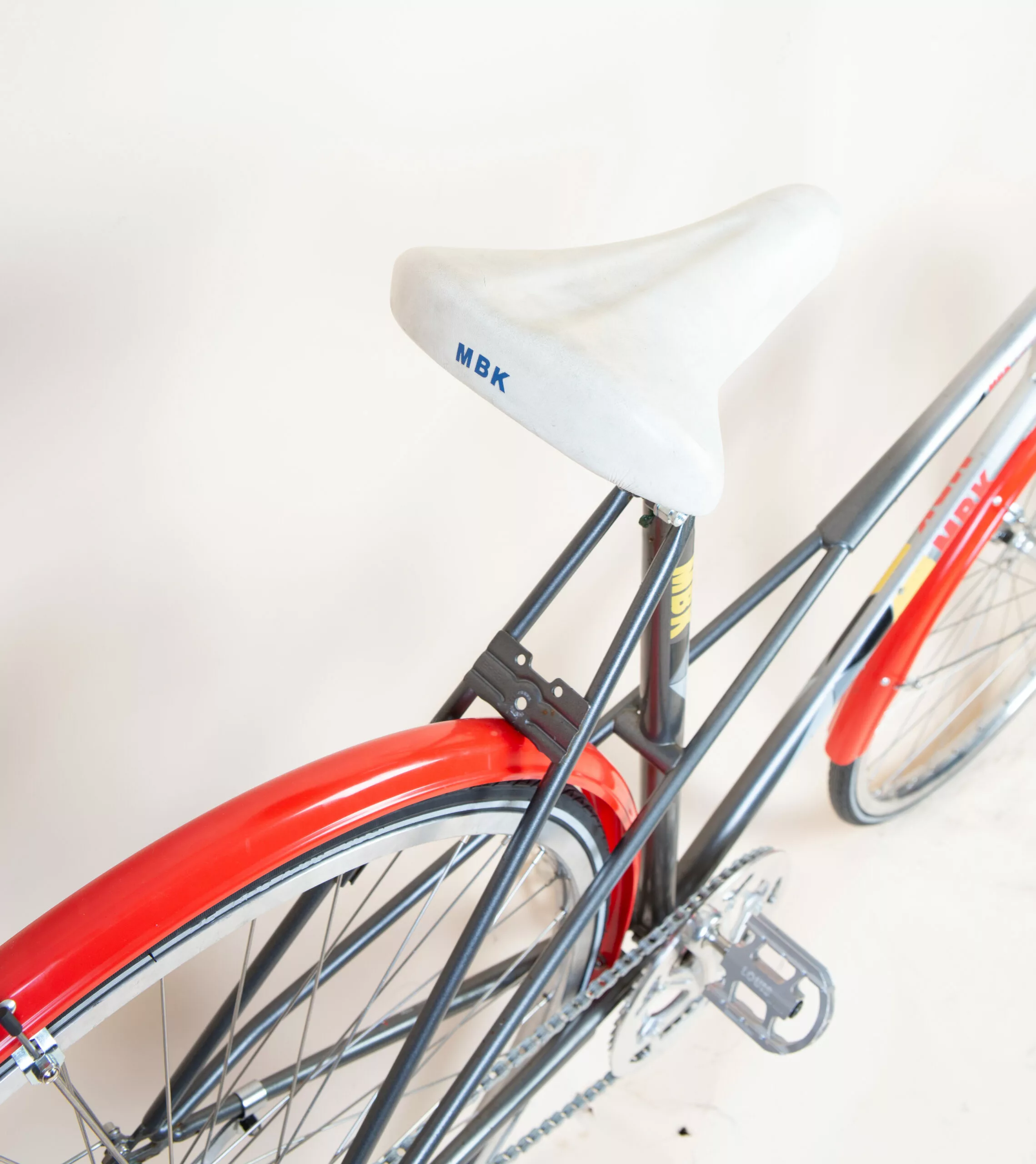Super lækker vintage MBK , alle dele er nye undtagen stel og sadel (original San Marco læder sadel) . Cyklen er bygget helt enkel op med 1 gear og fodbremse samt 1 håndbremse.