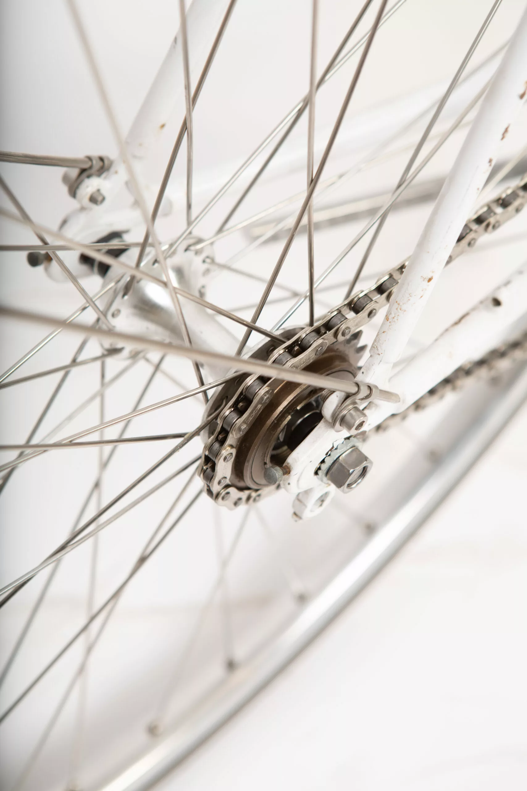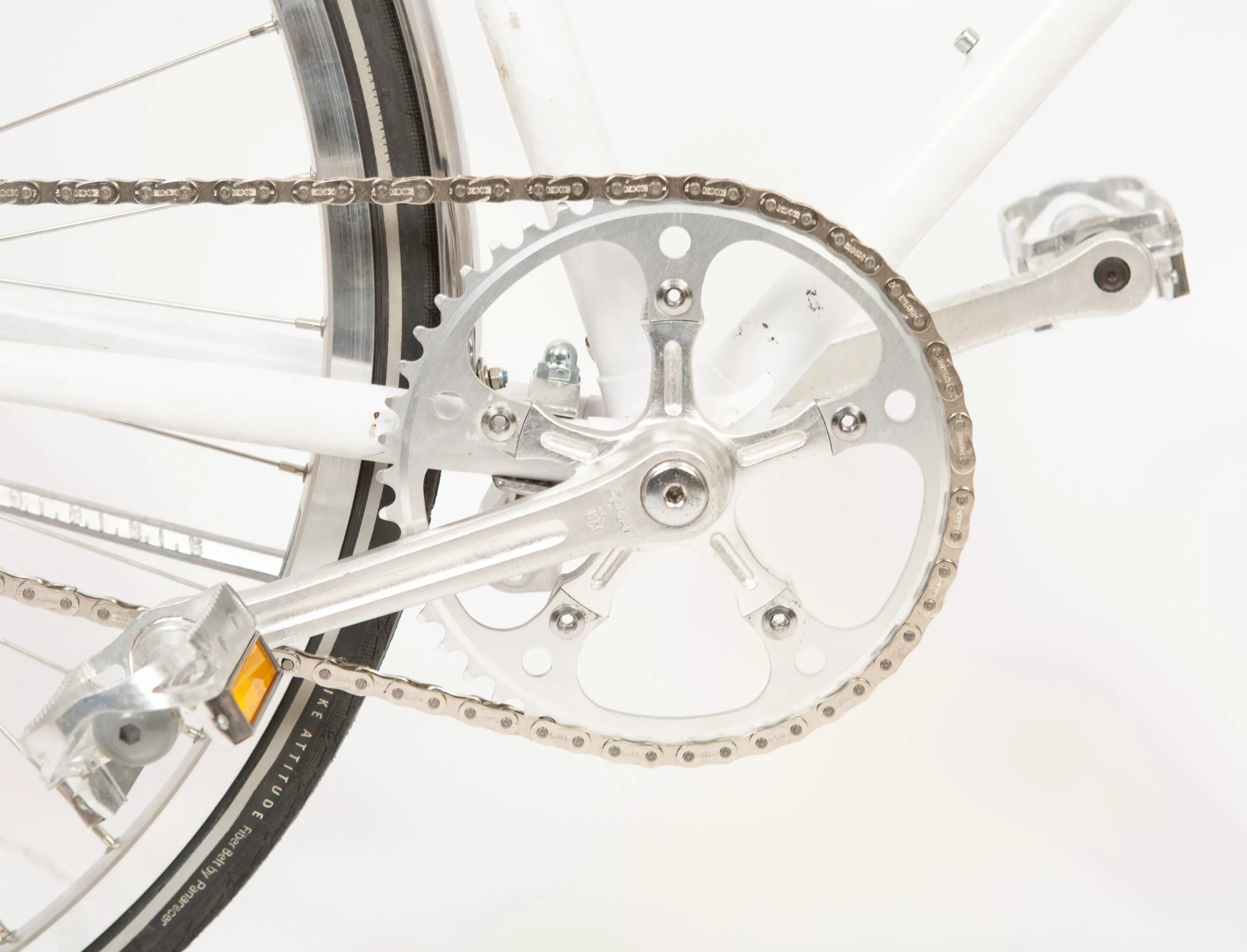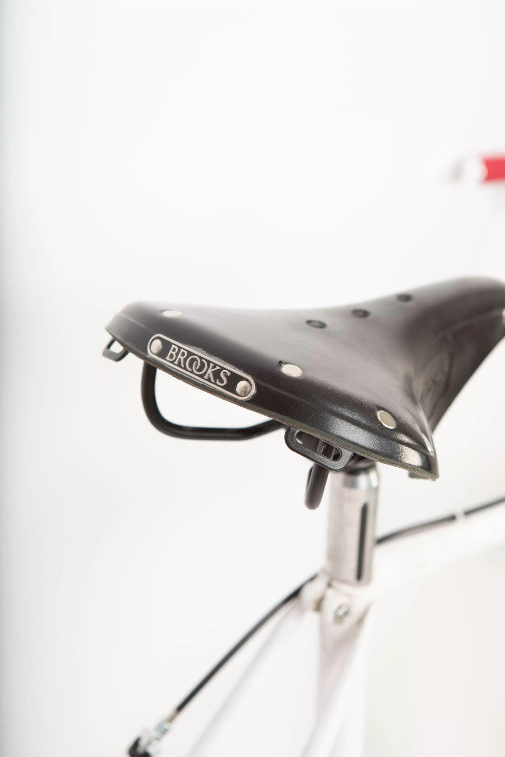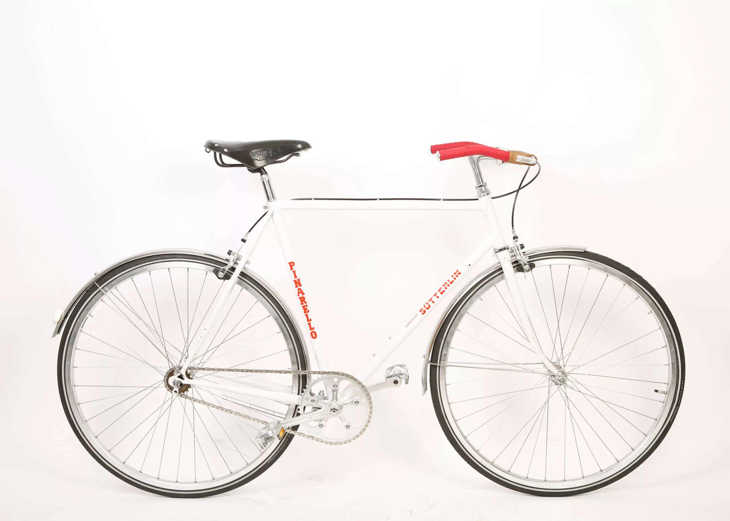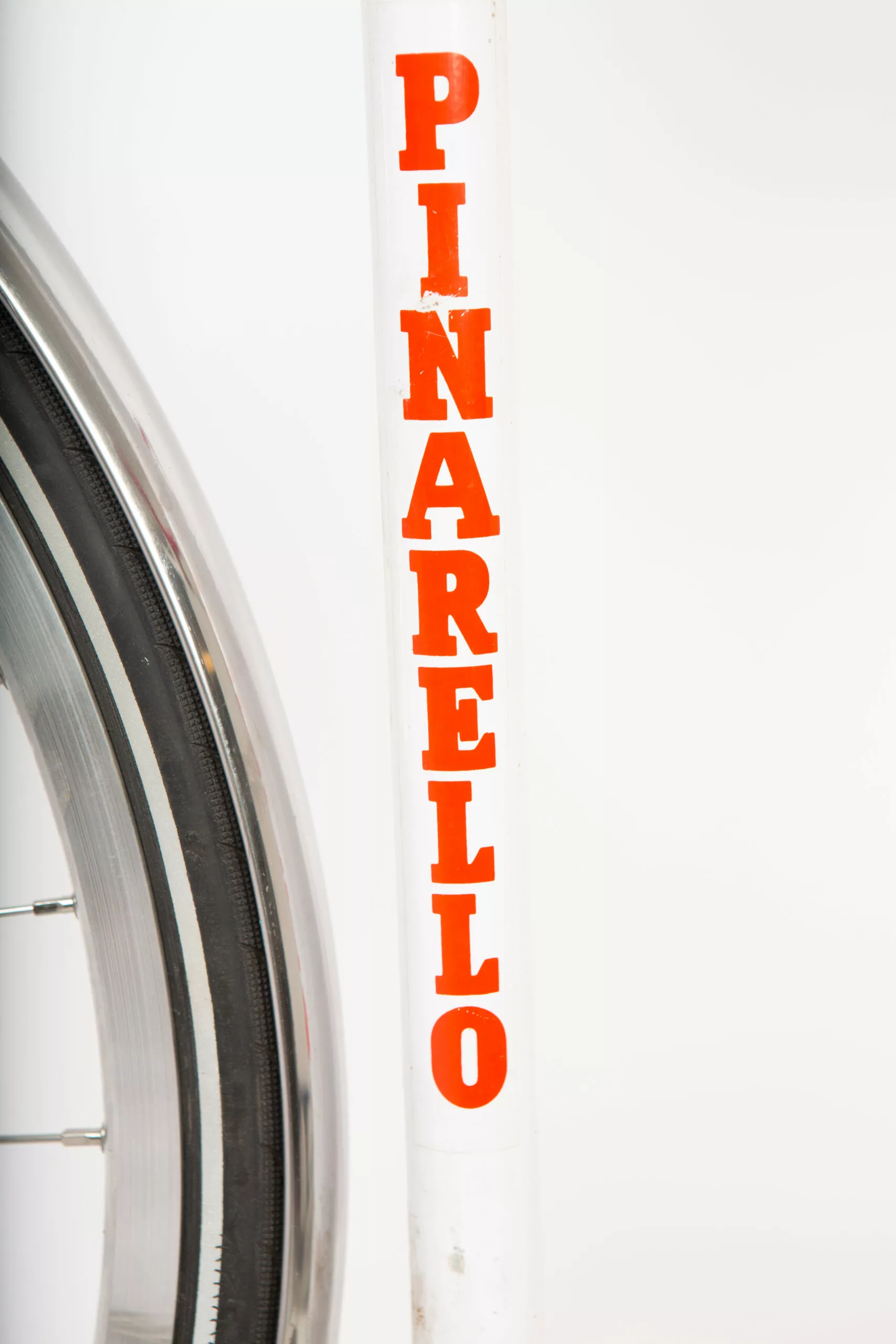 Vintage Pinarello single speed med friløb. Håndbyggede super stærke hjul. Harmonisk og hurtig og let cykel.