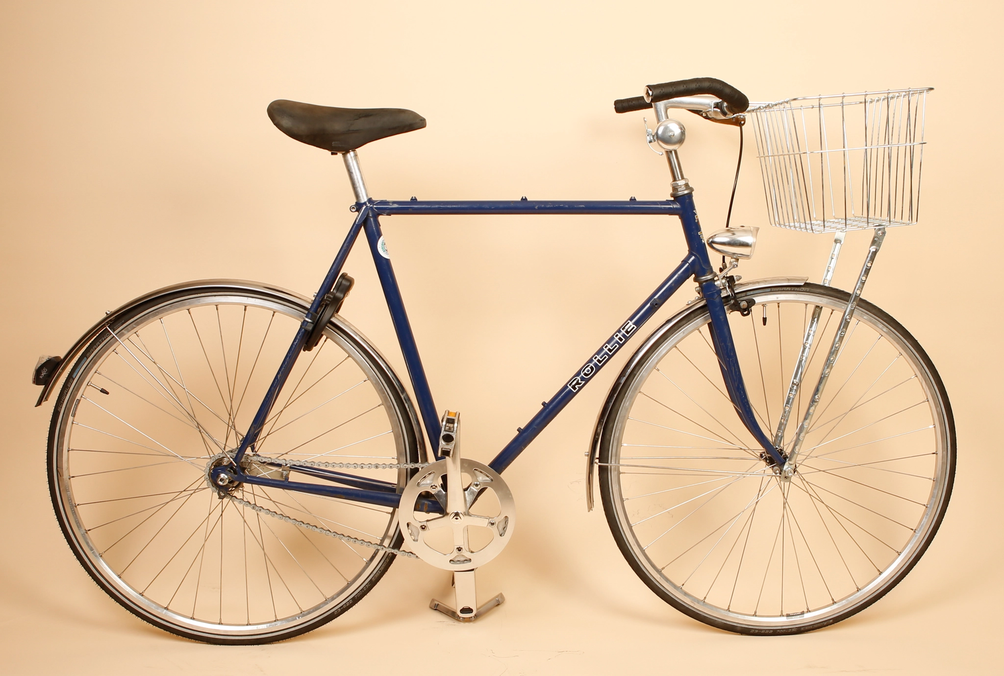 Vintage Rollie stel bygget op med 1. gear og fodbremse. Den har både rustfri skærme, kurv fra Wald . Godkendt lås samt lygter monteret.